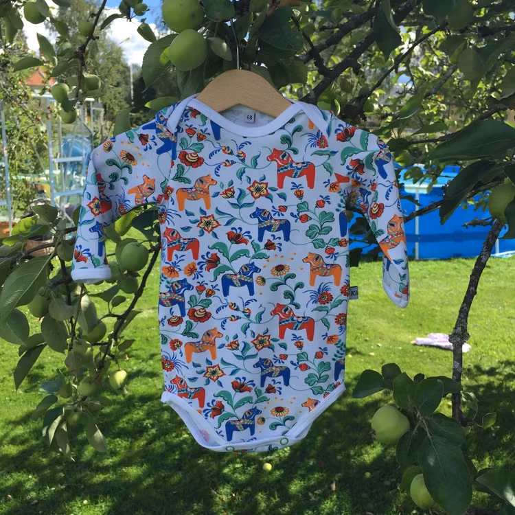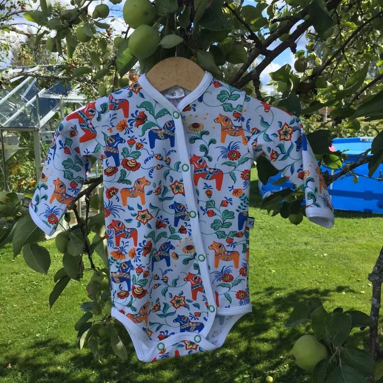 I lager. body 125 kr 50 cl 50 cl 56 cl 62 cl 68 cl 74 cl 80 cl Lägg i korgen body med dalahästar på vit botten med flerfärgade hästarstorlek 50-62 cl är fuskomlottstorlek 68-80 cl har omlotthals