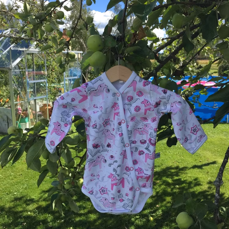 I lager. Body 125 kr 56 cl 56 cl 50 cl 62 cl 68 cl 74 cl 80 cl Lägg i korgen Body i dalahäst tyg på vit botten med rosa hästarst 50-62 cl är fuskomlott st 68-80 cl har omlotthals
