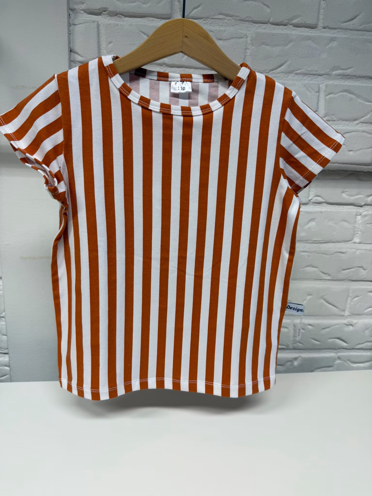 I lager. T-shirt med kort ärm 110 kr Cl 110 116 128 Lägg i korgen T-shirt i trikå med vita och orangea ränder